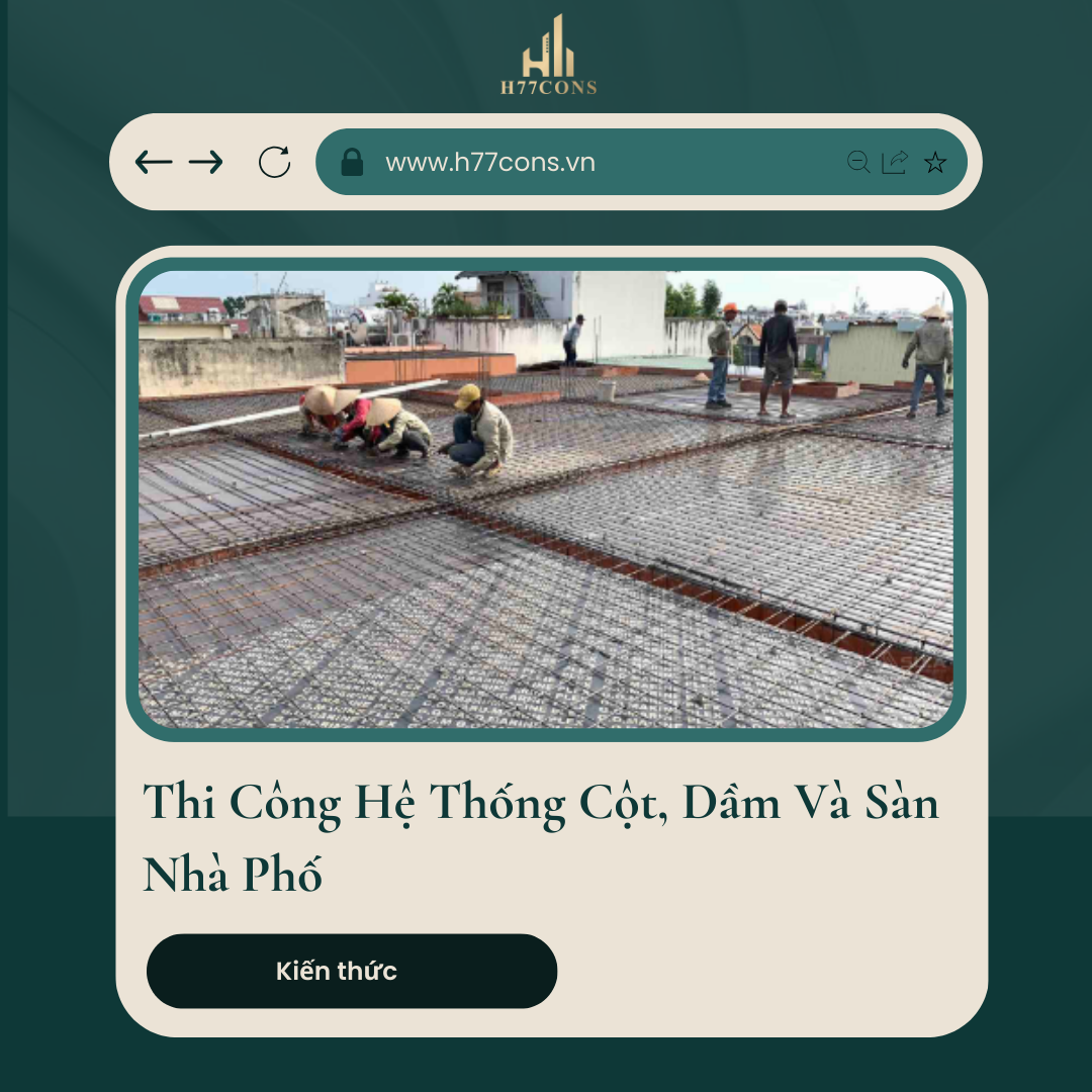 Hệ thống cột, dầm và sàn là bộ khung chịu lực chính của ngôi nhà, đóng vai trò quan trọng trong việc đảm bảo sự ổn định và an toàn cho công trình. Việc thi công hệ thống này đòi hỏi sự chính xác, tỉ mỉ và tuân thủ nghiêm ngặt các tiêu chuẩn kỹ thuật.